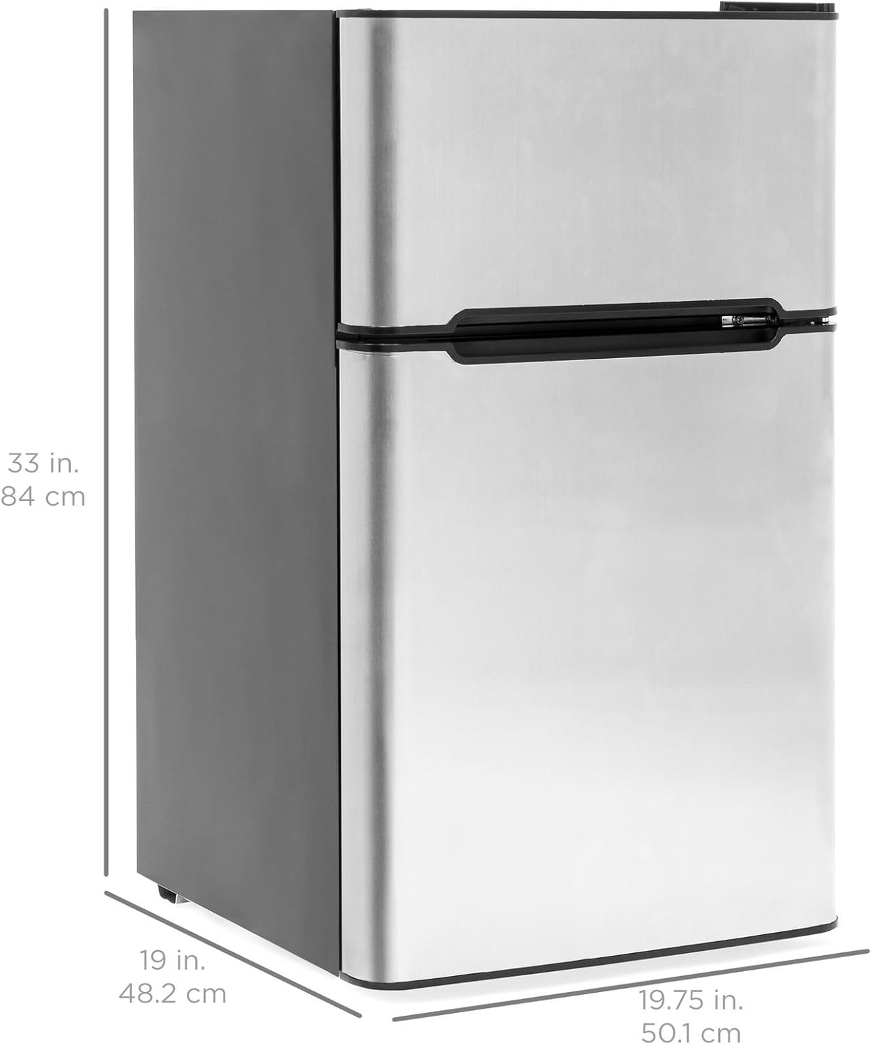 Amazon Com 3 2 Cu Ft Stainless Steel Double Doors Compact Mini Refrigerator Internal Freezer Compartment Cooler Fridge Perfect For Home Kitchen Hotel Office Dorm Wet Bars Adjustable Temperature Mechanism Appliances