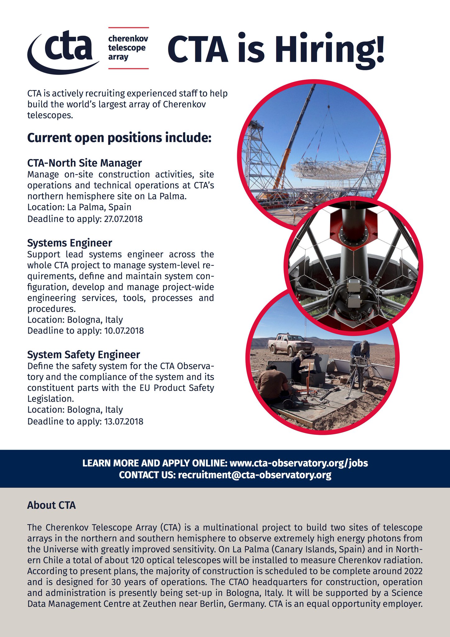 CherenkovTelArray on Twitter: "Want to be a part of building the world's largest and most advanced ground-based observatory for gamma-ray detection? Head to our Jobs page now to check out our latest