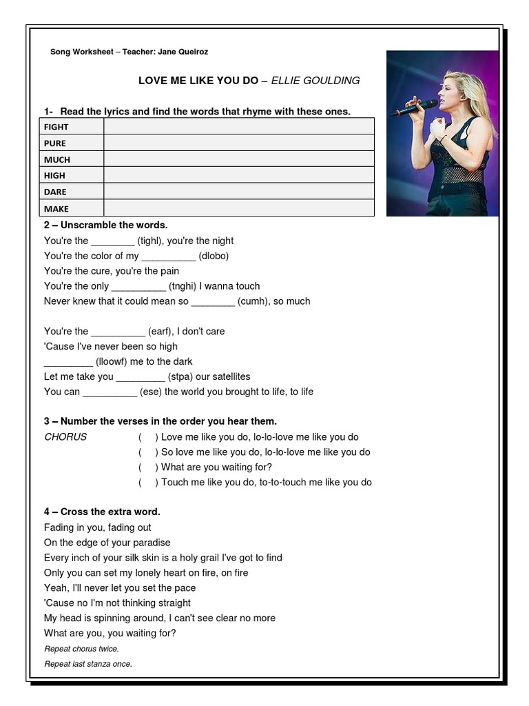 . Love Me Like You Do Live American Express Unstaged Lyrics Ellie Goulding Song In Images Ellie Goulding Love Me Like You Do Hosanna Vidya Vox Mashup Cover Lyrics Youtube Love Me Like You Do By Ellie Goulding English Esl Worksheets For Distance Learning And Physical Classrooms